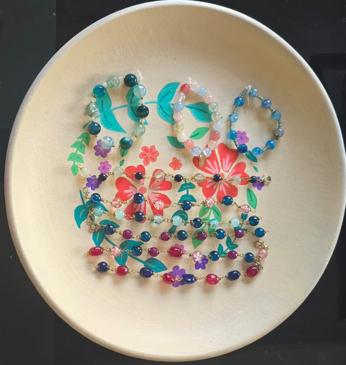My interest in handcrafted art and craft techniques has grown through hands on experimentation with jewellery making using beads and metal. Creating phone charms and bracelets introduced me to detail, repetition, and precision at a small scale. I am currently exploring crochet and basket making, which has expanded my understanding of rhythm, structure, and material behavior. These practices support my portfolio by strengthening my sensitivity to pattern, tactility, and process driven making across different mediums.